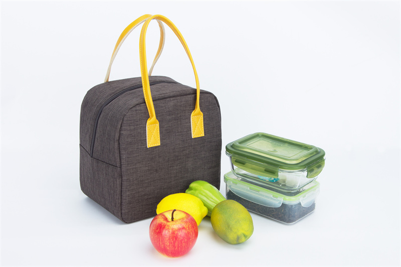 Caratteristiche di questa borsa termica per il pranzo 1. Tessuto in poliestere doppio 600D bicolore 2. Schiuma EPE di alta qualità con PEVA all'interno 3. Punto speciale X sull'impugnatura in PU 4. Tirazip in PU 5. Ampio scomparto per alimenti per l'intera giornata. |