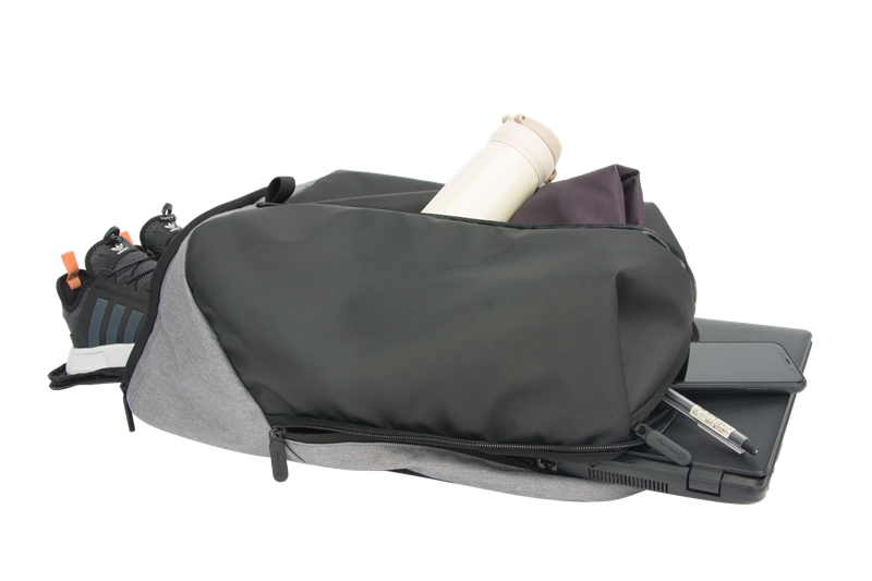 | Phoes, 열쇠 등을 위한 상단 퀵 포켓 | 병, 수건, 옷 등을 위한 전면 메인 수납공간 |