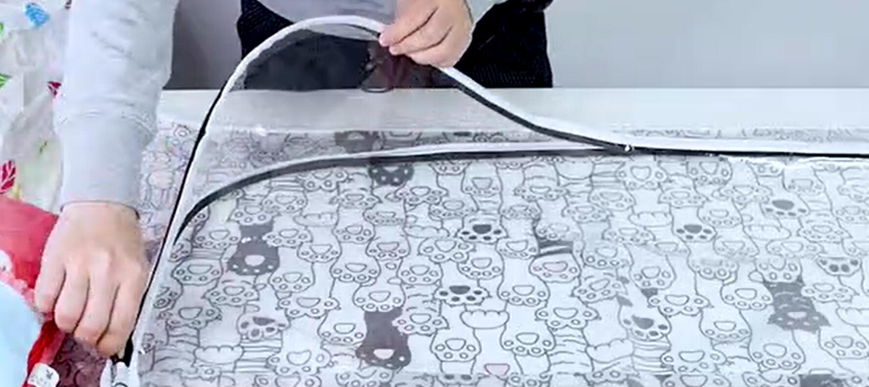 Tecido de padrão durável e forte com zíper suave e janela transparente, pode ser à prova de poeira. O lindo tecido de padrão neutro, que você pode sentir que é bastante macio ao tocá-lo.